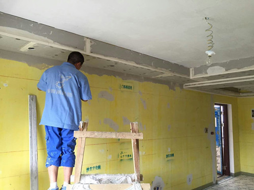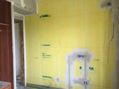 “黄墙”:对原建筑墙体的粉刷层进行黄墙腻子批刮,对原墙体起到封闭、防碱的作用,后期师傅在施工过程中必须用白腻子将黄墙覆盖掉,便数是不可少的,杜绝偷工减料的情况。