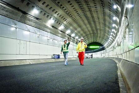 目前延安东路隧道北线工程基本完成,正在进行通车前的准备工作。 (图1)