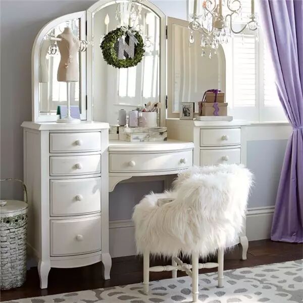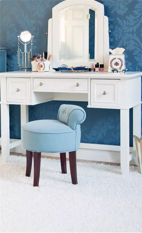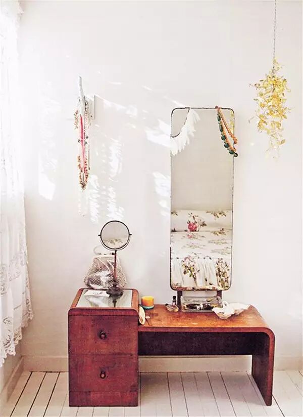 要说女孩子房间里必不可少的家具,那当然是梳妆台了。每个女孩都有自己不同的审美眼光,所以在外观选择上只要是个人喜欢就行,但梳妆台的外表最好选择用油漆刷过的,这样容易清理,不至于化妆品渗透到梳妆台内,影响梳妆台的外观。同时还可以根据房间的整体风格去搭配选择梳妆台的样式。欧式、复古······ 每一个女生都值得拥有一个兼具美观与实用的梳妆台。 # E/ c* J) n0 z