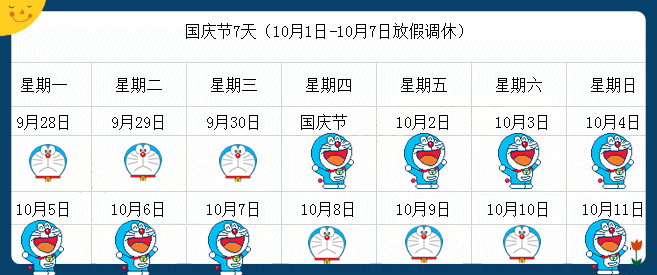从9月26日开始休假直到10月11日,共计16天,需要请假6天,请假的时间分别是28,29,30,还有10月的8号,9号,10日。 * l6 I' E2 W! ~# F( L7 D8 a" c