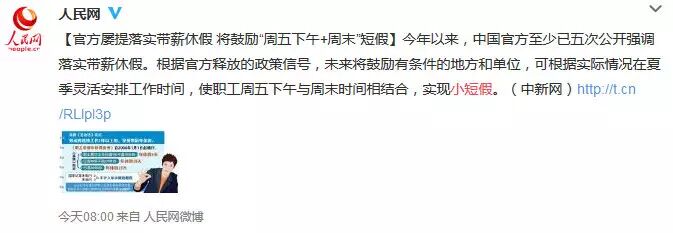 0 g1 E/ ]4 X* T, |. k @讓一切隨風7:官方屡提带薪休假鼓励周五下午加周末短假,你怎么看?“——我笑着看。”