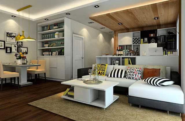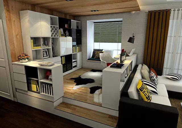 专为客厅面积不到10㎡的超小户型打造! 客厅与书房融为一体的感觉十分温馨。 0 W9 K, Y* x0 M4 ^