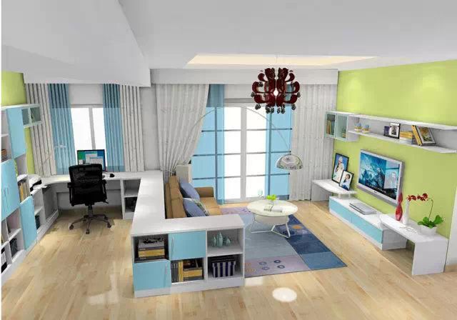 $ H1 B R9 t2 V+ K# W: Z 分割空间,客厅里有书房5 w# E e7 }& Y% k