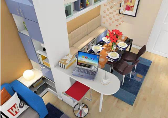 超小户型,客厅书房融为一体 H d2 U; A6 w