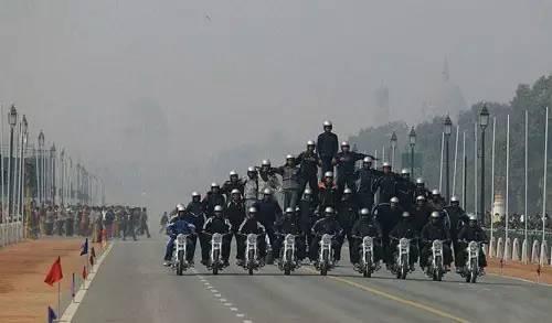 虽 然图片上看起来是有点像法师,但简单说这个“法师部队”就是随军牧师,他们隶属于亚美尼亚使徒教会。当然,牧师随军并不是亚美尼亚的独创,譬如在美国独立 战争中工作过的随军牧师就有两百多名,他们组织布道、举行洗礼、祷告、咨询和访问病弱的军人,被称为前线美军的灵魂支柱。 随军牧师在今天依然存在,比如以担任军队正式的宗教顾问等形式。他们为士兵们解决宗教信仰和战争的现实之间的冲突,就军队的精神状态向部队提供建议等等。 2.印度:摩托特技与骆驼兵 印度国庆阅兵更像一场户外演出。阅兵式上会进行高难度的摩托车特技表演,像这样: