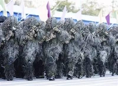 据 说这是在伪装成一片森林,然而壹读君(yiduiread)觉得,似乎叫“伊朗的移动拖把”更尊重事实。其实这是伊朗狙击手部队在参加阅兵仪式,他们穿的 是狙击手专用的“吉利服”。这种装束最早应用于实战是第一次世界大战时期,能使狙击手们有效地接近、观察和远距离射击。哦,伊朗还有一款追随极简主义的白 色头套和贝雷帽。 有人猜测这是“雪地作战制服”,设计前卫、防寒保暖、便于伪装。但是为啥配个不防弹且冻耳朵的贝雷帽就不好解释了。而白布枪套根本就是妨碍射击的累赘了。因此,伊朗这款白色制服很可能只是“阅兵礼服”,战场上鬼才这么穿。