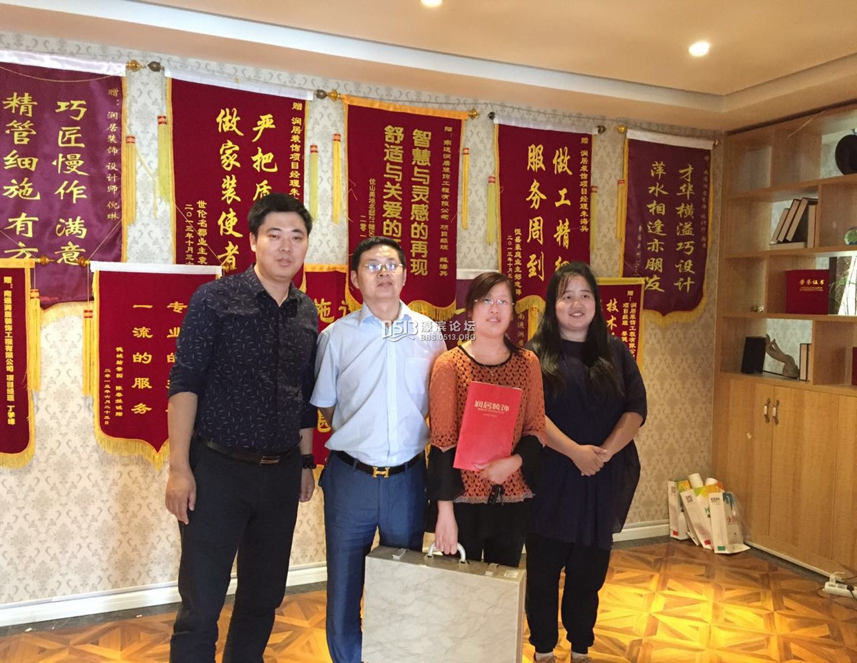 一次偶然的相遇,就注定了与润居的缘分。这位客户是南山国际的施先生,九月底,市场部、设计部每天都在南山国际坚守。九月底的那天,家装顾问王婷美女八点半就到了南山国际,在门口忽遇一客户,顿觉有眼缘,忙上前询问装修事宜,得知他还没有考虑好是否现在装,但同意让验房,验房时张小霞设计师与业主相谈甚欢,后业主也觉得现在正值装修旺季,于是提前了装修时间。1号那天一家大大小小来了六口人,可见对装修也是十分谨慎,那天与老板大山老师也聊得十分投缘,并在7号与我们愉快签单! 真正打动这位业主的还是我们的真诚,张小霞设计师在一次与他通话中也验证了这个事实,业主说:你们公司给我的感觉很好,有一说一,还有几个公司问到价格方面的东西就遮遮掩掩,你不信任客户,我怎么信任你们装修公司。 ' B' T* K. q& y4 y4 s