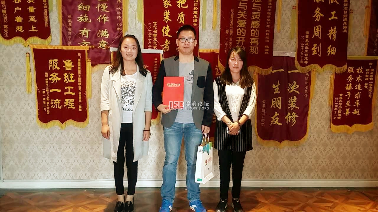 家装顾问王婷美女在30号邀约王先生来参加公司活动,电话中得知他这天上班,无法过来,但王婷说你可以下班之后过来,潜意识里我们都会以为他是在市区上班,让下班之后过来也就变得理所当然,但当王先生到了公司之后我们才得知他是在如皋上班,五点半下班,就是因为觉得王婷一个小姑娘也挺不容易,同为年轻人,深知在外拼搏的不容易,既然她说了他也不承诺了,不远数里赶到公司,在那天就交了定金。 ! V7 U* D" w$ U% f