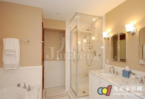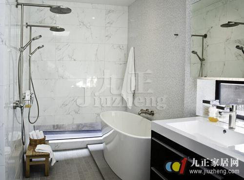 小户型的面积本来就有限,留给卫生间的空间也会很小,而卫生间中需要摆放的洁具电器又比较多,因此小户型卫生间在设计的时候就特别考验设计师的水平,那么小户型卫生间应该怎样设计呢?下面九正家居网给大家分享小卫生间设计的原则和技巧。 / r/ l! _. H9 Y; l2 g