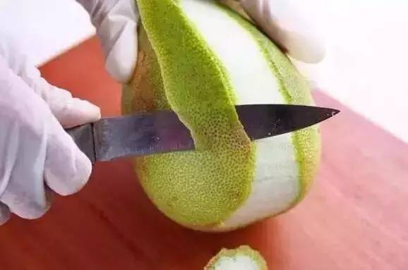 如果不将柚子皮的白及绿色分离,直接一起剥下,晒成干燥状后切成条或片状,可以拿来煮成浓茶饮用,有开胃透气的功效。