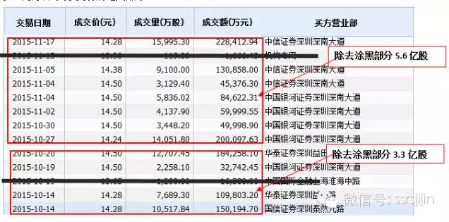 第二阶段, 2015年10-11月,钜盛华分两批交易,于2015年10月14日-20日大宗买回通过互换权益持有的万科约3.3亿股;10月27日-11月17日大宗买回通过收益互换持有的万科约5.6亿股。这两批次大宗交易占据了10月-11月万科A大宗交易的绝大部分: