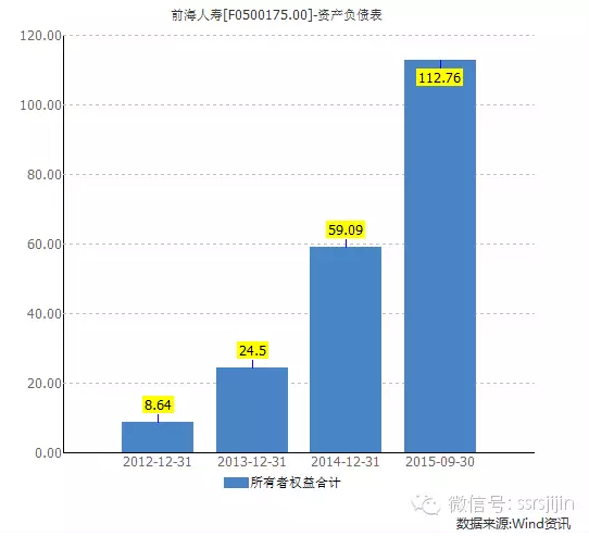 从保监会最新的数据披露可以看到整个保险行业的大概情况: 到今年10月底,整个行业的总资产规模11.8万亿,净资产规模1.6万亿。在这种规模的行业里面,前海人寿发展迅速,但是确实是保险小弟。 保险公司非常核心的指标其实是所有者权益。能卖多少保险,是要跟所有者权益挂钩的。最新数据显示,前海人寿的所有者权益到了113亿。 转播到腾讯微博