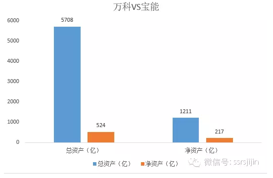 第一部分 宝能和万科的实力背景 之所以说小宝能、大万科,是相对而言的,因为万科是一个庞然大物。以宝能的总资产规模,如果它是上市公司的话,2800家上市公司,能排在160名附近,一点也不小,相当于国海证券的规模。而万科在A股里资产规模是30名。它们的总资产规模和净资产规模比较是这样的。