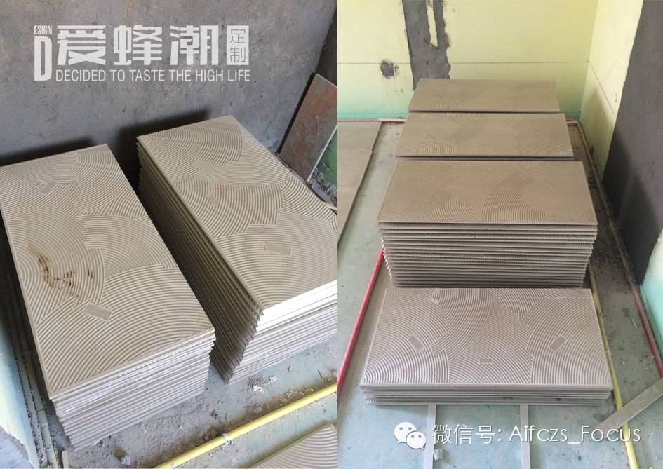 小编有话说: 瓷砖已进场,正在进行前期准备工作,待铺贴瓷砖已刷可背胶,等晾干。