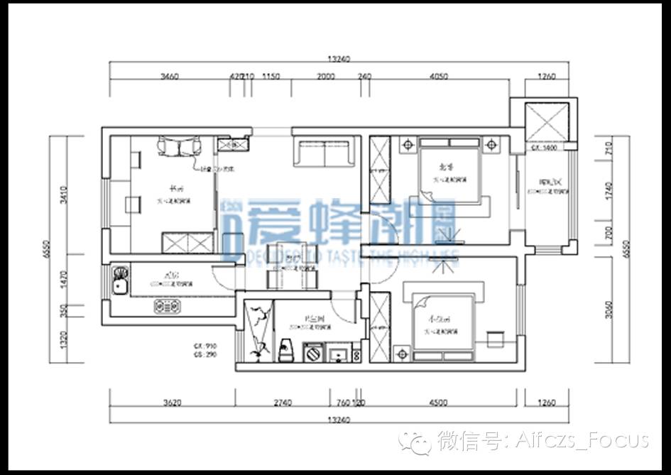 户型解析户型优点:两室朝南,采光很好 户型缺点:厨房和卫生间的采光比较暗