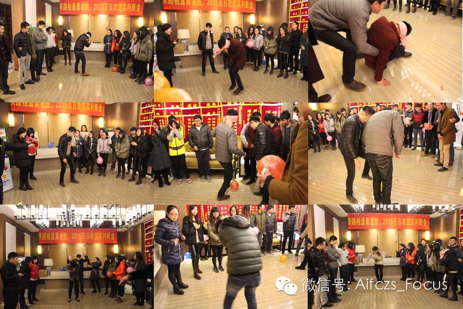全体人员按部门分成3组。 游戏一:百发百中 要求选手蒙住双眼,原地转8圈,在队友的提示下踩破气球,每组分派3人。