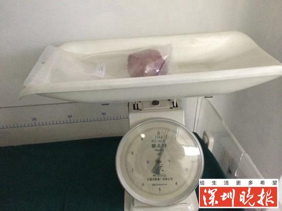 图为取出的结石 36岁的郑某看着自己身上取出来的石头,十分不愿意相信,觉得自己平素没什么问题,连感冒都很少,也没感觉胸闷、气促和发热,不相信自己身上藏着如此大的一个石头,11*8CM,居然比拳头还大。 2 月前,做水果生意的郑某因前一天喝酒后,排尿困难,以为是喝酒的原因,没注意,转天感到不适,去宝安区石岩某医院就诊,查出膀胱结石4*5公分,因为自己 不愿意手术,听家人的意见,进行中药调理。一段时间后,仍有尿中断,尿急的感觉。经朋友介绍,1 月 6 日来到宝安区中心医院就诊。经医院诊断为膀胱结石,建议手术治疗。1 月 11 日,张宇主任亲自主刀,为患者取石,手术只用了一个小时,手术非常顺利。 据主刀医生泌尿外科主任张宇介绍,手术中,一个比拳头还大的“巨大”结石呈现在医生面前,几乎占满了膀胱,因石头太大,只能用传统手术,切口15CM才将石头取出,一称竟达542g,张宇主任表示,这是他行医数十载见过最大的石头,4、5CM的石头倒是常见。 张 宇主任介绍,由于结石的病因比较复杂,有内因和外因,由于环境,饮食、遗传、年龄、药物等原因,都会有可能形成结石。像这么大的石头,至少经过多年的时间 才能形成。他建议,定期体检,早发现,早诊断,早治疗;平时要多饮水、多运动、合理膳食、科学补钙。(深圳晚报记者 孙中春 通讯员 赵香生 陈政宵 黄娟)