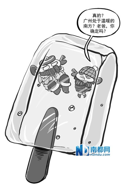 9 V! b7 f* u0 g/ H/ J' p0 c 不用怀疑,你真的在广州!微博上每天都有大批网友截屏发布广州的天气预报。从2月9日开始,广州一周气温介乎3-7℃,@万岁秦时明月雪女说这天气冷得她什么都不想干。@For-C heng也被冻成雪条了,两件外套,一件毛衣,一条围巾都挡不住寒冷。@傻儿同学连减肥都放弃了,“不吃饱会更冷的啊。”但来自外省的@C H A R LE N E LIU WE N不屑,“这就着急,让我们零下的怎么办?”@shaolun681109立马回应道:北方寒冷有供暖设备,广州就算冻到1℃也无供暖。