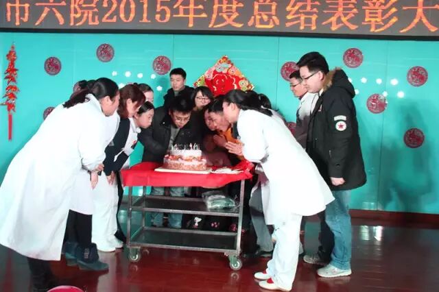 联欢会现场还出现了生日蛋糕,surprise!医院特地为的同仁们举办了庆生仪式,职工代表们一起上台吹蜡烛,温情满满,气氛绝佳!4 H% o0 Z" v" O! n1 R& j# I$ Q# H* P