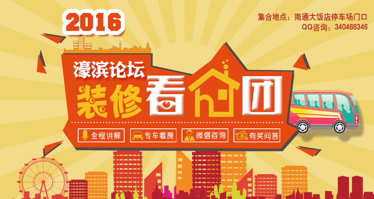 5 L* o& z4 z% A5 J8 R+ } 【活动时间】3月26日(周六)下午1点 【集合地点】南通大饭店停车场门口(我们会有豪华大巴在那等候,并挂有濠滨论坛装修看房团横幅) 【自带设备】 笔记本、笔、相机、自己户型图 (参观的工地均有项目经理和设计师在场,可先做简单的咨询) Ps:该活动不收取任何费用,相关集合事项会有工作人员在活动前2天之内电话通知,请同学们稍安勿躁~ 亲们,注意啦!福利来啦~