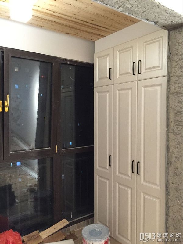 阳台储物柜也装好门了,乱糟糟的也没收拾,