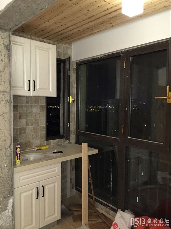 2 O w3 _ M: [ f, {. h" H- O洗衣机柜,到地的台面没完成,还是半成品。。。。。