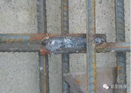 ) B* N& V) X5 j! l* y2 L 另外,在钢筋的连接方面也必须要注意,尤其是在受力钢筋长度不足,需要接长的时候,应该采用焊接,并且确保焊接部位的钢筋强度不弱于同直径钢筋强度!一般常用焊接方式有两种:电阻压力焊和双面搭接焊。 电阻压力焊需要用到特定的设备,比较麻烦,小型施工队基本上是没有的,最常见的是双面搭接焊。焊接过程中要特别注意的是,焊接长度不得小于钢筋直径的5倍,并且保证焊接质量。比如一根直径22mm的钢筋,双面焊接长度就不得小于110mm。