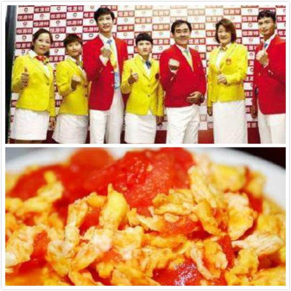 由于涉及颜色主要使用红色和黄色,这套礼服被公众戏称为“番茄炒蛋”。 这套改款的“番茄炒蛋”曾出现在2010年广州亚运会,2012年伦敦奥运会,2014年仁川亚运会上。 里约奥运会在即,被戏称的“番茄炒蛋”又!来!啦!