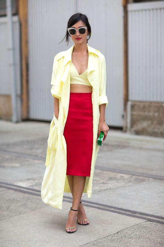 Tips3:黄+红 在黄色中加入少量的红,则具有明显的橙色感觉,其性格也会从冷漠、高傲转化为一种有分寸感的热情、温暖。当然如果跟闺蜜出行,两人一黄一红,那肯定是街上靓丽的风景。