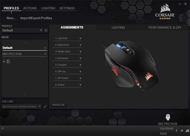 软件方面,海盗船M65 Pro RGB也提供了游戏鼠标的常规设计,可以对灯光、按钮、DPI等参数进行调节,另外它还内置了一个校准功能,让鼠标更适合用户的操作习惯。