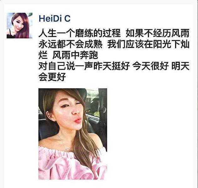 据台湾“东森新闻云”6月12日报道,澳门娱乐大亨洗米华(周焯华)2015年曝出轨风波,在港媒面前牵着港模Mandy回家后,让正宫陈慧玲(Heidi)心死决定离婚,小三则火速怀上第二胎准备扶正,而他也被拍到飞英国伦敦陪产。已成前妻的陈慧玲经历婚变打击,12日传出发讯息表白心情。 陈慧玲和老公周焯华结婚13年,2014年和小三Mandy先后为男方生下一女,争宠大战变全城关注焦点,最后丈夫不切割小三的行为,令她决定斩断婚姻关系。据香港媒体报道,她12日在朋友圈的发言被流出,讯息是自我疗伤的留言:“人生一个磨练的过程,如果不经历风雨,永远都不会成熟,我们应该在阳光下灿烂,风雨中奔跑。对自己说一声昨天挺好,今天很好,明天会更好。” 离婚后的陈慧玲在脸书分享照片,儿子周柏豪也陪在身边搞笑合照,看起来心情开朗,她和前夫周焯华互动仍受到各界关注,日前还传出对方赠送一块价值台币3亿元的澳门店面。她继续在朋友圈发文,“不管昨夜经历了怎样的撕心裂肺,早晨醒来这个城市依然车水[url=]马龙[/url]。没有人在意你失去了什么,没有人关心你快不快乐,这个世界不会为了任何人停下前进的步伐。你只能铭记或者遗忘,那一站你爱过或者恨过的旅程,那一段你拼命努力却感觉不到希望的日子,都会过去。新的一天,新的起航,做最好的自己。”她给自己鼓励的话,令亲友十分心疼,网友更激动献上支持留言。
