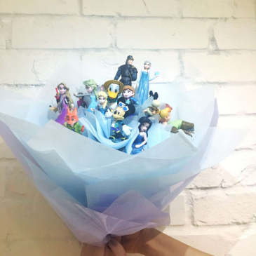 小K花半年时间集齐原版迪士尼公仔,并制作成花束送给女友