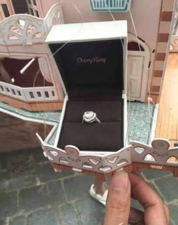 此前女友毫不知情,直到飞屋降落到身边,小K拿着戒指深情告白“我愿意当你一生的骑士,保护你走过世间繁华,你想要的的童话,我都会把它变成现实,你愿意当我一辈子的公主么?”,女友激动惊喜地答应了求婚。