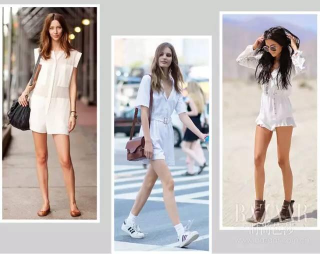 白色是夏天必备的清新选择,连体短裤也不例外。简洁宽松的方袋设计或是复古的荷叶边、方扣腰带,清爽而飘飘欲仙,只能说这个腿露的无污染~