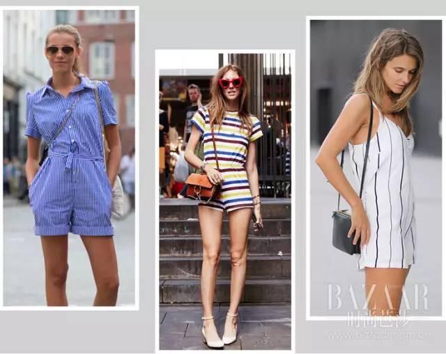 条纹天生带着文艺范儿。工作日穿一条细条纹衬衫连体短裤是办公室里干练时髦的Office Lady,周末换上彩色或宽条纹连体短裤,约上闺蜜喝个下午茶也能成为一道抢眼的风景。