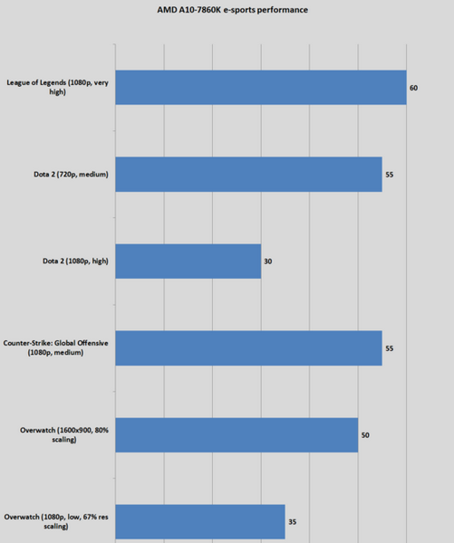 既然是主打电竞市场的产品,那么首先自然要来看看RX 460在主流电竞游戏方面的表现。基本上,测试结果并不是十分令人满意,比如《Dota 2》的1080P高画质帧速率仅为30fps,《守望先锋》1080P低画质仅为35fps,尤其是后者属于高流动性的第一人称视角射击游戏,至少需要60fps才能有更好的感受。
