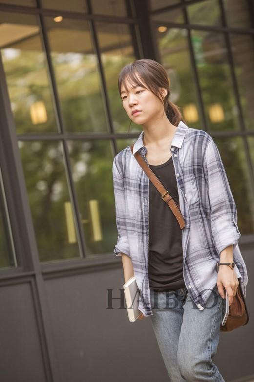 《微微一笑很倾城》 从大荧幕到小荧幕,微微应该是近期最火的女生,男生们都爱的极品校花蓝黑色格纹衬衫透着一股子干练帅气。