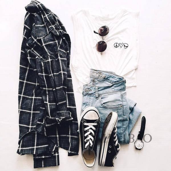 时尚博主私照 白色T恤+牛仔裤+格纹衬衫,堪称早秋经典三件套!