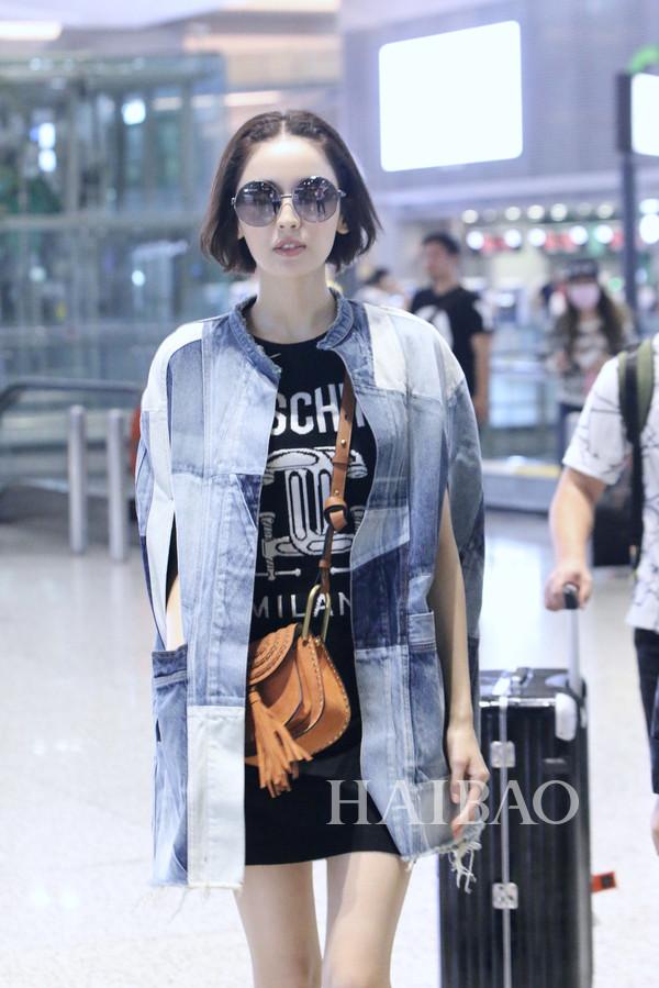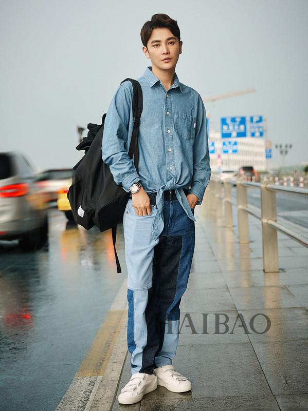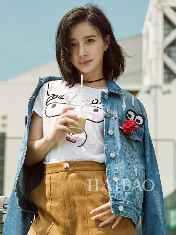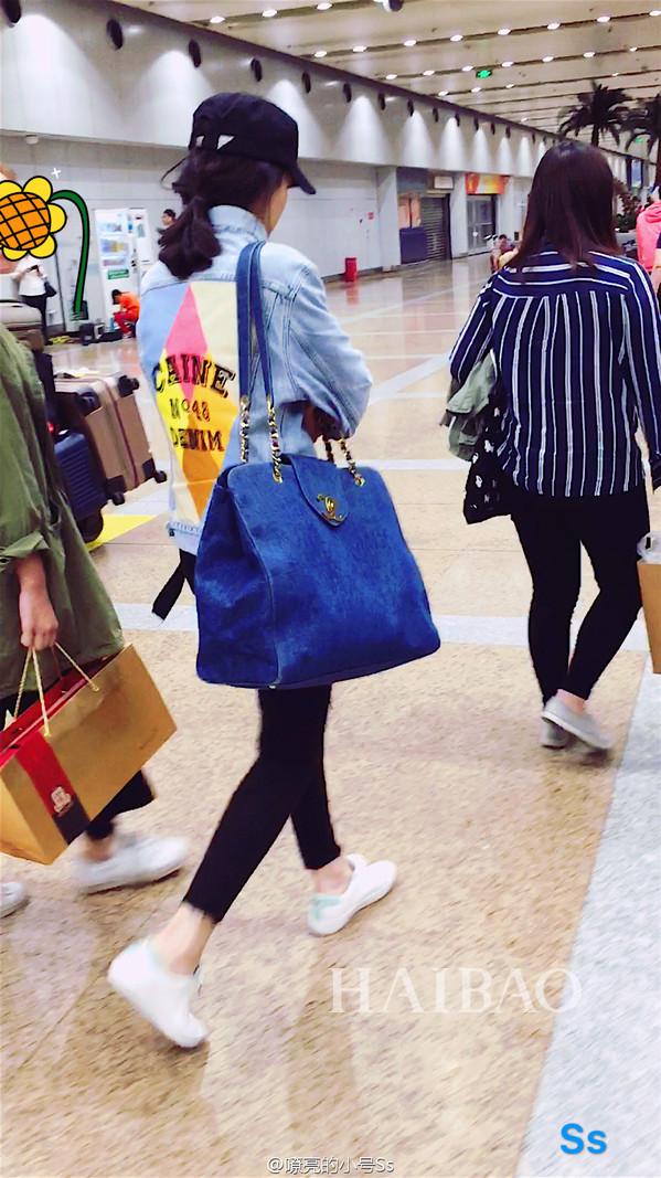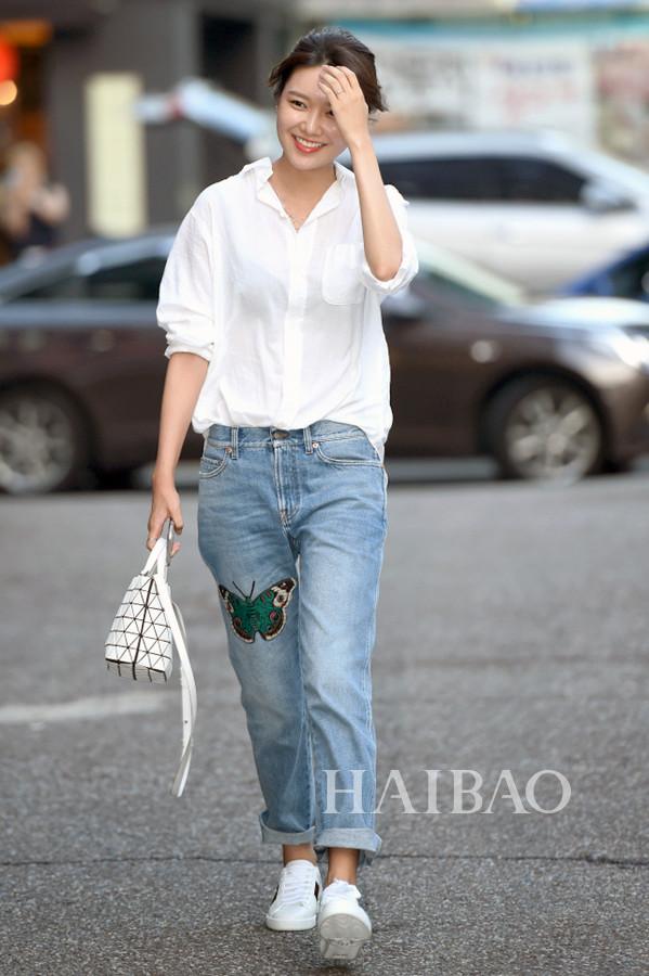 宋茜干净的牛仔裤上一个刺绣贴花蝴蝶显得栩栩如生,十足浪漫。