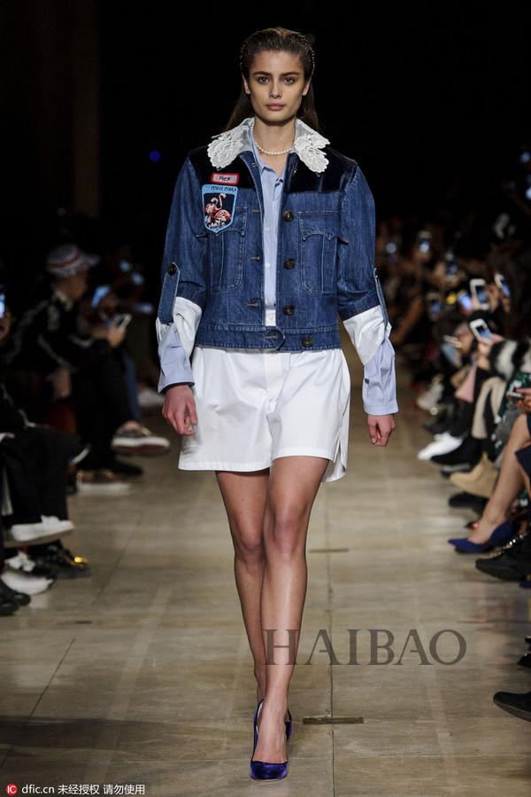说完浅显易懂的拼接元素,编编带大家来看看街头大势的贴花设计:Miu Miu这一季确实有不少牛仔穿搭灵感,这样,既然选择贴花就一定要谨记三个条件:抢眼、DIY、新鲜感。