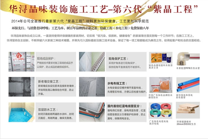 第六大优惠: 【服务增值】 : (1)活动签单客户,享隐蔽工程保修十年 (水、电、防水),基础装修二年质保。(保养期间发生其它成本费另计) (2)活动期间签单,由总经理颁发质量联保监督牌,为您家工程品质保驾护航! 3 l) G% e# d, O% [