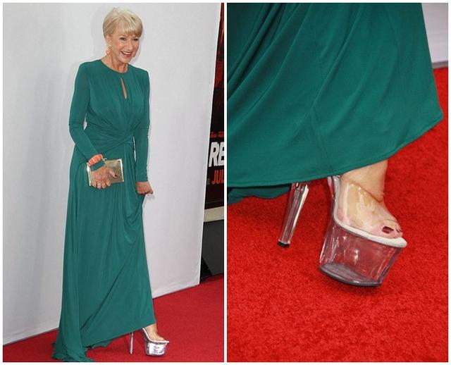 有读者妹子表示,超级不喜欢全透明鞋子,感觉是站街女! 哈哈哈确实不太正经的感觉。海伦·米伦阿姨有一双专门用来走红毯的全透明“战靴”,就被她自己称为stripper shoes脱衣舞女鞋。