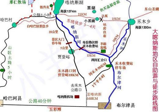 我找来这条徒步路线的图看了一下,这是一条半环形的线路,全长约80公里,分4天走完,其中前半段40多公里,也就是“贾登峪-禾木”,是可以选择驾车到达的,只是任安儿他们选择了徒步完成。这一段从图上看,人烟稠密,又有公路,谈不上有什么风险。真正比较难的,是“禾木-小黑湖-喀纳斯”这35公里。“禾木-小黑湖”上坡15公里,过了“达坂”(山口),就是小黑湖,是一个小高山湖。禾木乡海拔1300米,达坂海拔2000米,不算高。小黑湖是一个中途住宿的点,有当地常年开蒙古包等住宿供游客租用的,任安儿他们就租住了这种蒙古包。这一点也证明了该条线路的成熟度确实很高。小黑湖到喀纳斯21公里,但是下坡,强度也不大。但任安儿就是在这段路上迷路最终遇难。 雪中禾木