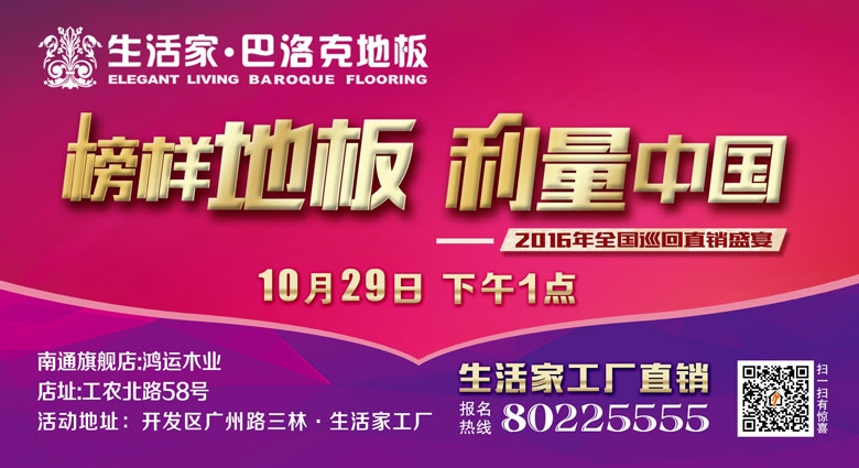 【疯狂抽奖 遇上缤纷豪礼】 活动现场,凡缴纳货款满2000元送抽奖券1张,满4000元送抽奖券2张,以此类推,上不封顶。 一等奖1名 精美花梨实木餐桌椅一套 二等奖3名 花梨实木花架一对 三等奖5名 花梨实木衣帽架一个 四等奖15名 花梨实木足浴桶一个 幸运奖30名 精美水晶烟灰缸一个 报名热线:80225555 活动地址:开发区广州路三林·生活家工厂 南通旗舰店:鸿运木业 地址:工农北路58号