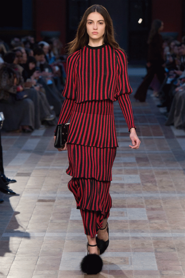 针织衫、条纹和对比色一直是SoniaRykiel血液里的DNA。与高冷的时装秀场不同,模特们走SoniaRykiel秀时都是一副欢乐俏皮的样子。