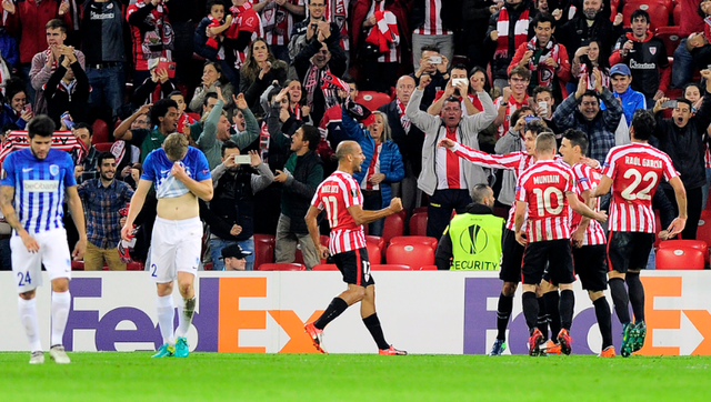 阿杜里斯独进5球 腾讯体育11月4日讯 北京时间11月4日凌晨,2016-17赛季欧联杯小组赛第4轮战罢,曼联、国米、比利亚雷亚尔均落败,顿涅茨克矿工、沙尔克04和泽尼特提前2轮晋级。在毕尔巴鄂竞技5-3击败根克的比赛中,阿杜里斯一人包办5球,其中有3球是点球。 费内巴切 2-1 曼联(A组) 鲁尼突前,博格巴在身后,拉什福德和马夏尔两翼齐飞,施奈德林和埃雷拉坐镇中场。费内巴切方面,范佩西在板凳上待命。开场仅2分钟,卡尔迪里姆左路传中,绍乌禁区内漂亮的倒钩破门,费内巴切主场1-0领先。第30分钟,伊布替下受伤的博格巴。 第59分钟,伊布后场放倒托帕尔犯规,伦斯任意球直接爆射破网,费内巴切2-0领先!曼联直到第89分钟才扳回一分,鲁尼外围突施冷箭,皮球飞入大门左上角,2-1!剩下的时间曼联无力回天,最终红魔在客场1-2不敌费内巴切。 南安普敦 2-1 国际米兰(K组) J-罗德里格斯和雷德蒙突前,塔迪奇在身后,日本国脚吉田麻也出战。国米方面,伊卡尔迪突前,坎德雷瓦和佩里西奇两翼齐飞,日本球星长友佑都出战。第33分钟,佩里西奇门前抢点攻门被挡,随后佩里西奇将球捅到门前,伊卡尔迪转身低射破门,0-1!国米客场领先。上半场补时阶段,佩里西奇禁区内不慎手球犯规,塔迪奇主罚的点球被汉达诺维奇飞身扑出! 第64分钟,南安普敦角球开出,范迪克抢点攻门打中横梁弹出,但范迪克跟进补射破门,1-1!第70分钟,麦奎因左路传中,长友佑都解围不慎将球撞进自家大门,1-2!最终国米在客场1-2惨遭南安普敦逆转,蓝黑军团4战仅拿到3分,出线希望渺茫。 奥地利维也纳 2-4 罗马(E组) 罗马排出全主力阵容,沙拉维、哲科和佩罗蒂三箭齐发,纳因格兰、斯特罗曼和帕雷德斯构建3中场。开场仅2分钟,维鲁托右路突破低传门前,鲁迪格和门将阿里森解围撞到一起,卡约德将球送进空门,1-0!奥地利维也纳在主场取得梦幻开局。但仅仅2分钟后,佩雷斯突入禁区横传门前,哲科包抄到位轻松破门,1-1! 第18分钟,帕雷德斯角球传中,哲科甩头攻门被挡,德罗西门前补射破门,1-2!第65分钟,沙拉维左路传中,哲科禁区内凌空垫射打中立柱弹出,波黑神塔跟进补射破门,1-3!哲科梅开二度!第78分钟,罗马任意球挑传禁区,菲利波维奇禁区内伸脚挡了一下,纳因格兰右脚大力推射破门,1-4!第89分钟,罗特普勒回做,格伦沃德大禁区线上左脚推射破门,2-4!最终罗马在客场4-2击败奥地利维也纳。 罗马(433):19-阿里森/13-佩雷斯、2-鲁迪格、16-德罗西、3-小胡安/4-纳因格兰、6-斯特罗曼、5-帕雷德斯/92-沙拉维(30-格尔森71')、9-哲科、8-佩罗蒂(7-伊图尔贝84') 佛罗伦萨 3-0 利贝雷茨(J组) 第15分钟,塞巴斯蒂安做球,耶利济奇外围右脚远射,皮球击中立柱弹出!第26分钟,托莫维奇传球,卡利尼奇禁区内左脚攻门打偏。第30分钟,苏克尼克禁区内放倒耶利济奇犯规,耶利济奇罚入点球,1-0!佛罗伦萨主场取得领先。第42分钟,佛罗伦萨长传禁区,后卫倒地铲球失误,卡利尼奇得球晃过出击的门将将球送进空门,2-0! 第52分钟,塞巴斯蒂安传球,巴莱罗右脚爆射将球打飞。第59分钟,卡利尼奇做球,基耶萨禁区右侧左脚攻门打偏。第64分钟,耶利济奇传球,卡利尼奇右脚远射打偏。第73分钟,巴莱罗传球,塞巴斯蒂安禁区前摆脱后卫右脚大力低射破门,比分变成了3-0!最终紫百合主场3球大胜利贝雷茨, 佛罗伦萨(343):12-塔塔鲁萨努/2-冈萨洛、4-德马约、40-托莫维奇/31-米利奇、6-卡洛斯-桑切斯、19-塞巴斯蒂安、20-巴莱罗(30-巴巴卡79')/25-基耶萨、9-卡利尼奇(10-贝纳尔德斯基86')、72-耶利济奇(8-维奇诺69') 其他场次 A组 索尔亚 1-1 费耶诺德 第15分钟,库伊特底线高球传中,约根森门前高高跃起头槌破门,0-1!费耶诺德客场取得领先。第43分钟,费耶诺德后卫博特格辛禁区内手球犯规领到第2张黄牌被红牌罚下,福斯特主罚的点球被门将布拉德-琼斯扑出,但福斯特跟进补射破门,1-1!第62分钟,柳贝诺维奇传球,卡拉瓦耶夫禁区内右脚攻门打中立柱弹出,费耶诺德逃过一劫。最终两队1-1战平。 B组 阿斯塔纳 1-1 奥林匹亚科斯 第8分钟,特乌马西传球,德斯波托维奇门前包抄右脚近射破门,1-0!阿斯塔纳主场取得领先。第29分钟,曼塔蒂斯传中,塞巴禁区内高高跃起头槌破网,1-1!最终两队1-1战平。 希腊人竞技 1-0 年青人 第30分钟,阿洛内夫蒂斯传中,索特里奥禁区内右脚攻门,皮球撞在左侧立柱弹出!年青人逃过一劫。第67分钟,年青人后卫姆巴布侵犯卡尔劳被直接红牌罚下。第69分钟,希腊人竞技左路传中,索特里奥混战中左脚低射近角得手,1-0!凭借这粒进球,希腊人竞技主场1-0击败10人年青人,全取三分。 C组 安德莱赫特 6-1 美因茨 第9分钟,奇普休直塞,斯坦丘前场右路打出一记似传似射的球,皮球直接从近角窜入,1-0!第15分钟,美因茨左路传中,阿杰伊前点头球解围失误,布拉西斯左脚低射,门将扑救不及,美因茨1-1扳平比分。第41分钟,奇普休右路突破倒三角回传,无人盯防的斯坦丘禁区内右脚低射远角梅开二度,2-1!第62分钟,安德莱赫特左路传中被挡,蒂耶勒曼斯外围右脚漂亮的弧线球破网,比分变成了3-1! 第89分钟,卡佩尔右侧角球弧线球传中,特奥多茨克远点漂亮的甩头破门,4-1!第92分钟,安德莱赫特快速反击,特奥多茨克右路传中,哈尼包抄攻门被挡,哈尼第一时间选择横传,布鲁诺轻松将球送进空门,5-1!第94分钟,贝尔禁区内手球犯规,主裁判将手指向12码处,特奥多茨克罚入点球,6-1!特奥多茨克梅开二度,最终安