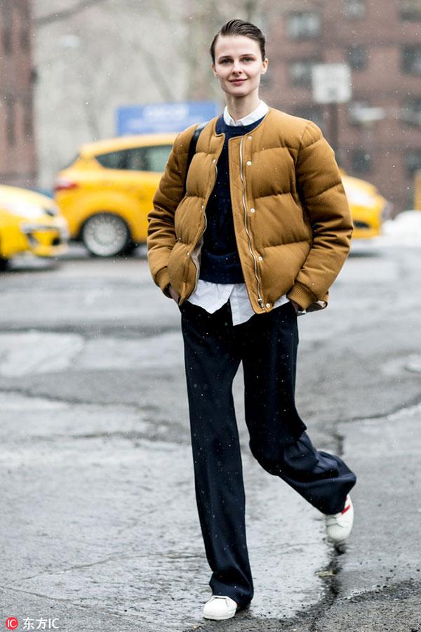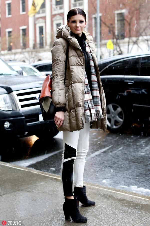 对于大多人来说,一件轻盈的羽绒服也能够满足你的保暖需要,合体的剪裁和收腰也让你看起来颇为精神: 同样是暗色羽绒服,这些潮人秉着合身的原则将羽绒服穿得干练、精神: