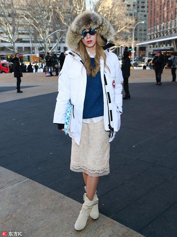 KK在大冬天晨跑穿得是它: Riley Keough 在片场拍戏穿得是它,不仅 Riley Keough ,很多女明星在拍戏时都会过上Canada goose的羽绒服来御寒: 明星博主们在时装周穿得也是它:
