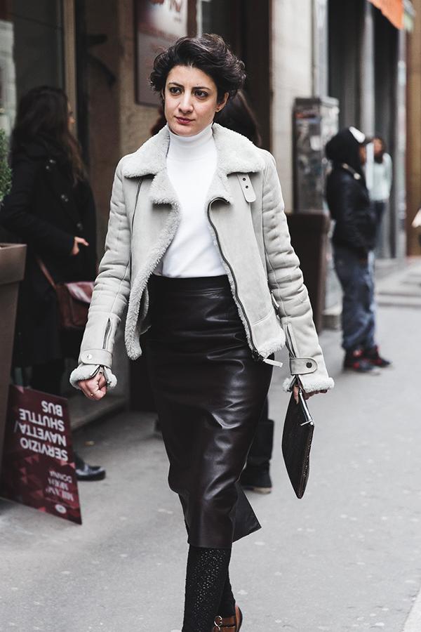2. 挺实的裙身 冬天穿裙子也总绕不开两大难题:一是摩擦,二是静电。所以很多人秋冬总是拒绝裙装,因为很难穿出效果。其实,只要裙身够挺实,这俩bug也能不攻自破。 推荐单品:皮裙 轻薄柔软的裙装总是搞不定内搭裤袜的摩擦力和静电,穿上经常很丑、很尴尬。而皮裙绝对是这两大难题的绝缘体,廓形完全不会受干扰。 皮裙的面料相对“强势”,所以应对裤袜和裙底之间可能产生的摩擦也相对轻松。A字款的皮裙空间充足可以避免干扰,包臀款的皮裙其实也能屏蔽干扰。 虽然铅笔裙无法避免裤袜和裙底的摩擦,但在皮裙挺实的造型下,这些摩擦也丝毫不会影响到裙子的效果。 除此之外,皮裙的厚实和挺括同样可以避免裙装“反季节”的尴尬违和,“消化”钝感较足的上装也很有一套。 尤其是开叉款式的皮裙,僵硬的线条下更多了几分轻巧和动感,还能顺便 南通0 |
