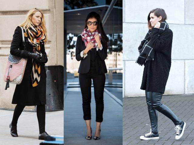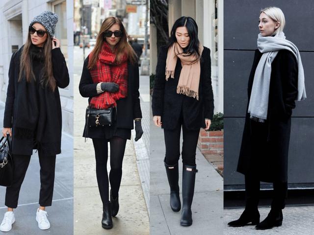 如果你已经有了一条格子围巾,那么你需要找到你衣服柜子里最基础款的衣服,黑白灰驼色。